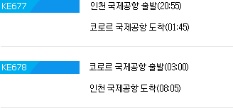 • 매주 목요일(4박5일), 일요일(5박6일) 직항 출발